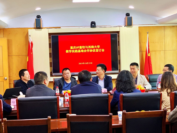 在簽約儀式上,趙永聚院長介紹了學(xué)校和學(xué)院的基本情況,并希望與黔江區(qū)和六九公司加強(qiáng)合作教學(xué)科研和技術(shù)服務(wù)的合作。69畜牧羅總表示熱烈歡迎西南大學(xué)動物科技學(xué)院學(xué)生和老師到公司考察和指導(dǎo),并為公司發(fā)展輸送優(yōu)秀人才和技術(shù)支撐。孫區(qū)長發(fā)言說希望西南大學(xué)多為黔江區(qū)農(nóng)業(yè)產(chǎn)業(yè)發(fā)展、脫貧攻堅(jiān)和鄉(xiāng)村振興提供各類支持,希望以與六九合作為起點(diǎn),以一域服務(wù)全局,全面加強(qiáng)校地合作,促進(jìn)黔江經(jīng)濟(jì)、社會發(fā)展。