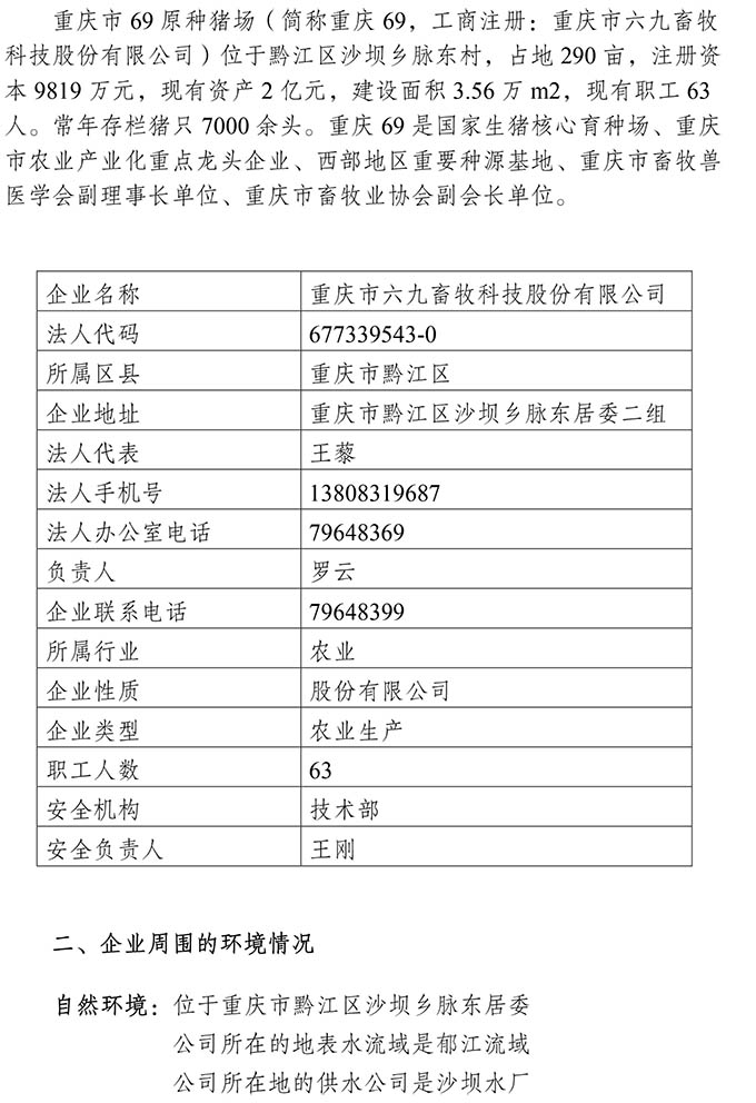 重慶市六九畜牧科技股份有限公司環(huán)境信息公開
