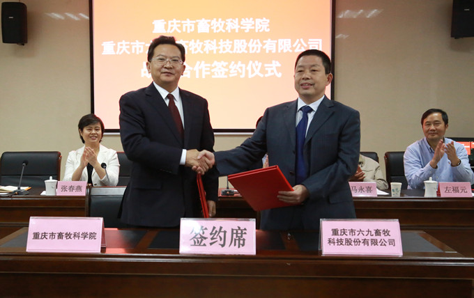 2016年10月28日,在重慶市畜牧科學院會議室,重慶市畜牧科學院院長劉作華和重慶市六九畜牧科技股份有公司總經理羅云共同簽訂了《共建重慶生豬產業技術研究院有限公司戰略合作協議》。