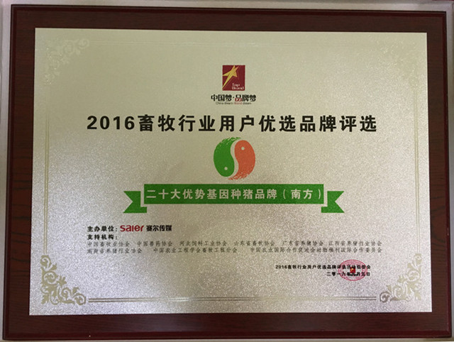 在該次會議中的2016畜牧行業(yè)用戶優(yōu)評品牌評選活動中,重慶69獲得了“二十大優(yōu)勢基因種豬品牌(南方)“。