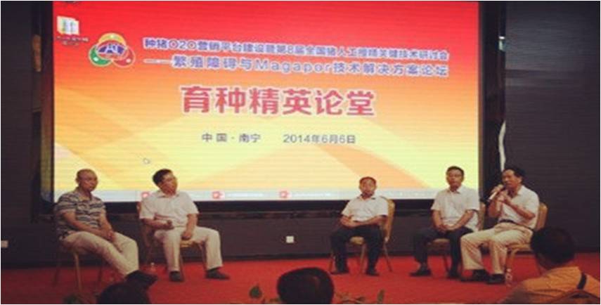 2014年6月4-7日,第八屆全國豬AI關鍵技術研討會在廣西南寧召開,我場技術員龔成代表公司參加了本屆研討會。場長助理肖麗撰寫的論文《影響公豬精液品質的固定效應分析》得到了評審專家組的高度評價和認可,喜獲三等獎。
